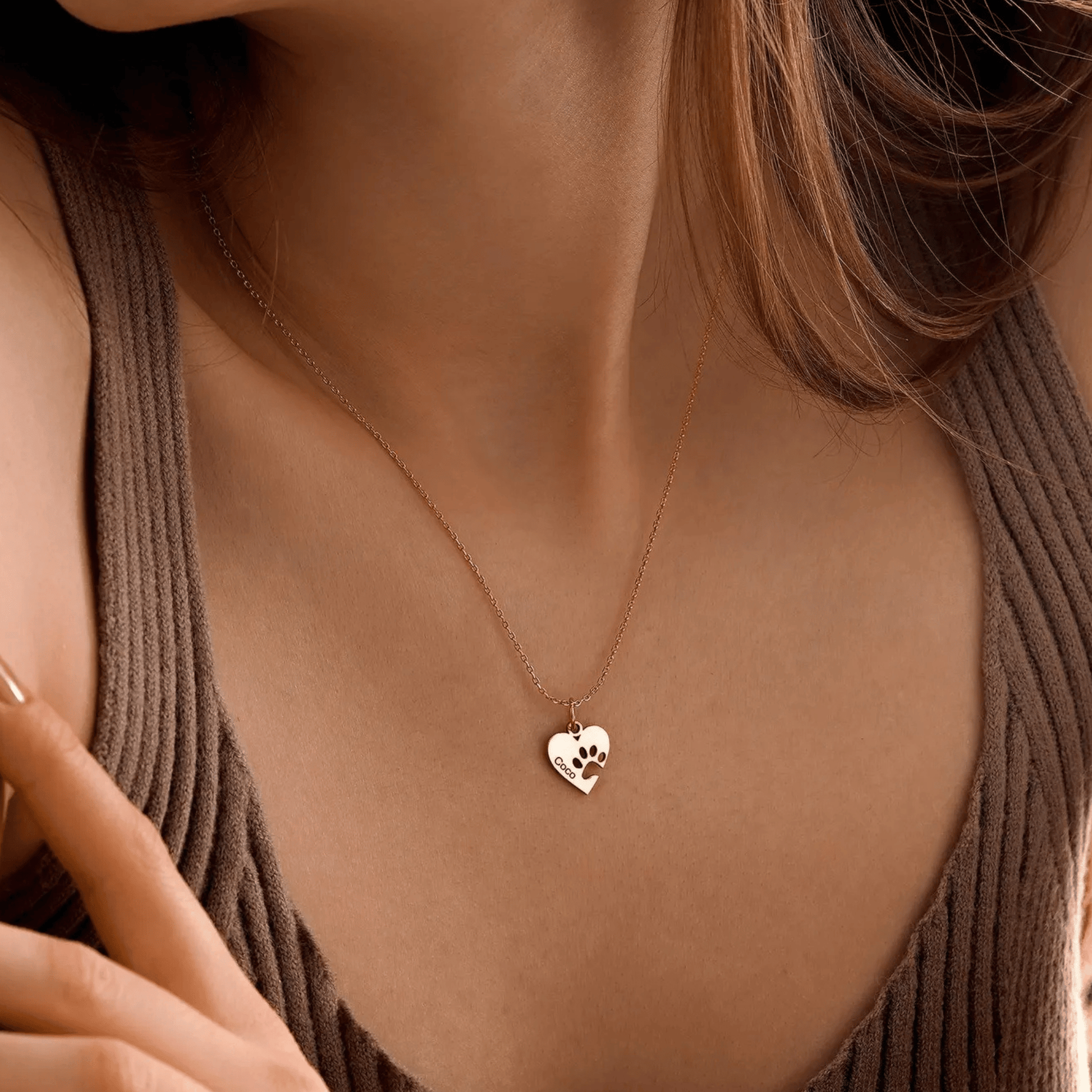 Mantén a tu mascota cerca con nuestro Collar con Nombre y Pata de Corazón. Cada collar tiene un lindo corazón con una huella de pata recortada y tu nombre grabado en él. Es el regalo perfecto para los amantes de los animales y una forma especial de llevar a tu mascota contigo todos los días.